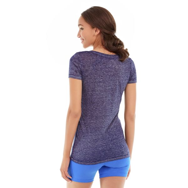 • Navy blue heather soft v-neck tee.